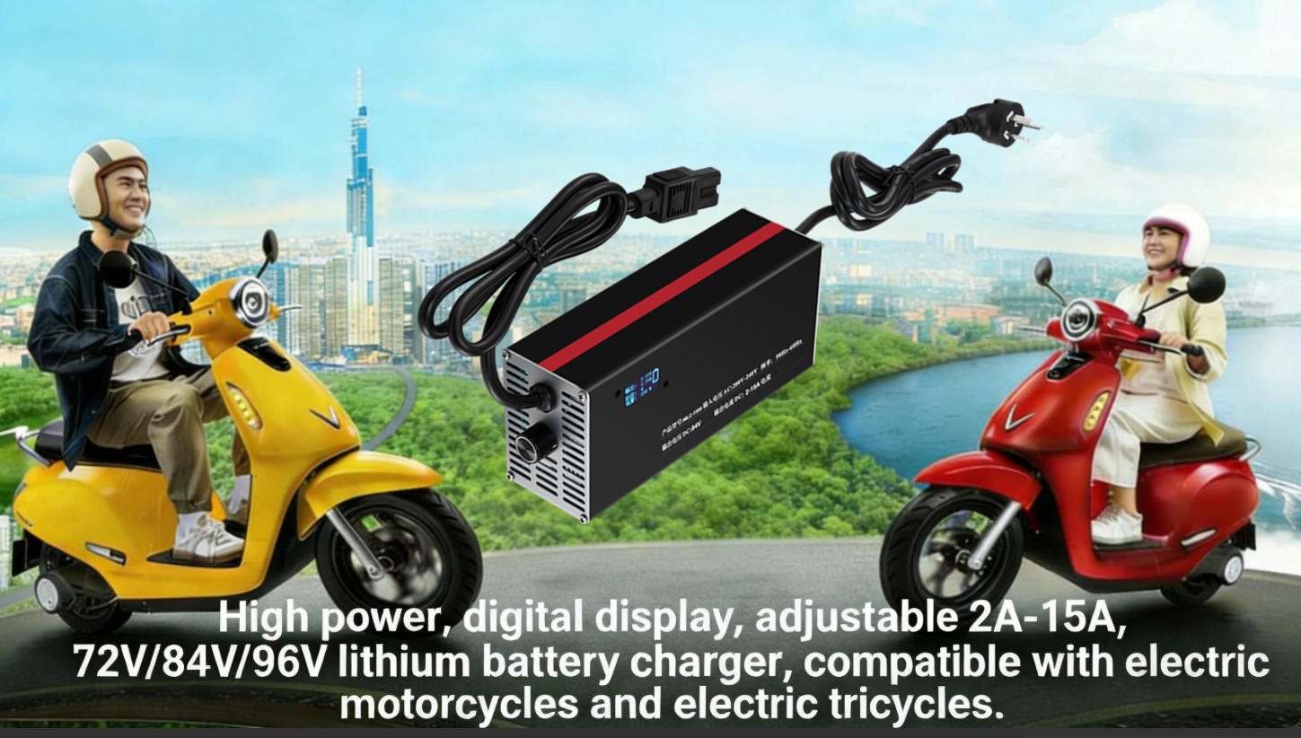 Smart Fast Charger for Electric Motorcycles | 2A-15A Adjustable | LCD Display | Compatible with VinFast, Honda, Yadea & More